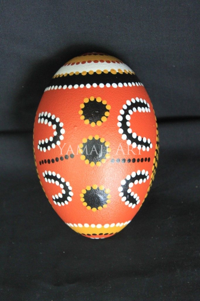 Each emu egg is unique and hand painted by Aboriginal artists using traditional indigenous designs. I havent heard of anywhere else in the world thats bigger. Your emu egg will be in a variety of animal themes including crocodile emu kangaroo and turtle.